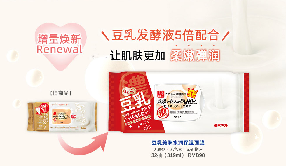 4. 新增高保湿成分(大豆油,大豆芽精华)使皮肤更温和更滋润。