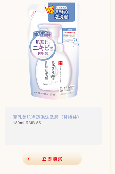 莎娜豆乳美肌净透洗面乳 查看详情 关闭详情 莎娜豆乳美肌净透泡沫洗颜 查看详情 关闭详情 莎娜豆乳美肌净透保湿喷雾 查看详情 关闭详情 莎娜豆乳美肌净透精华液 查看详情 关闭详情 莎娜豆乳美肌净透多效凝胶 查看详情 关闭详情